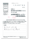 ホームワンでは、債務整理をご依頼されて、事件が終了されたお客様を対象にしたアンケート調査を実施しております。お客様からお寄せいただいたご意見・ご要望・ご指摘は、いったん「お客様相談室」に集約し、改善策を検討したうえで、事務所のメンバー全員で業務改善に取り組みます。