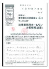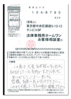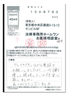 事務員さんの対応が特に良く、初めてでドキドキしていたのですが、今までためらって電話しないでいたのがウソのように安心させていただきました。またお願いします。