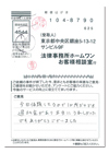 ホームワンでは、債務整理をご依頼されて、事件が終了されたお客様を対象にしたアンケート調査を実施しております。お客様からお寄せいただいたご意見・ご要望・ご指摘は、いったん「お客様相談室」に集約し、改善策を検討したうえで、事務所のメンバー全員で業務改善に取り組みます。