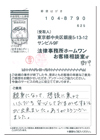 ホームワンのCMを見てTELしたのですが、まさか過払い金が●●●万円近く返ってくるとは。ホームワンCMの通りでした。もっと私と同じ人を幸せにして下さい。ありがとうございました。