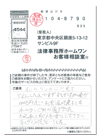 ホームワンでは、債務整理をご依頼されて、事件が終了されたお客様を対象にしたアンケート調査を実施しております。お客様からお寄せいただいたご意見・ご要望・ご指摘は、いったん「お客様相談室」に集約し、改善策を検討したうえで、事務所のメンバー全員で業務改善に取り組みます。