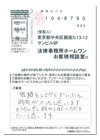 ホームワンでは、債務整理をご依頼されて、事件が終了されたお客様を対象にしたアンケート調査を実施しております。お客様からお寄せいただいたご意見・ご要望・ご指摘は、いったん「お客様相談室」に集約し、改善策を検討したうえで、事務所のメンバー全員で業務改善に取り組みます。