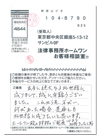 本当に絶大なるお世話に成りまして、誠に有難うございました。これから先、万が一、何かあった場合、是非ともお世話に成りたいと思います。ホームワン殿のますますのご発展、心よりお祈りいたします。