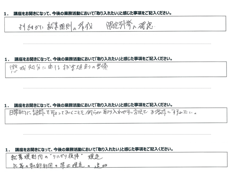 問題社員に対処するためには、就業規則といったハード面と、運用といったソフト面の双方が重要であり、その双方について、適切な助言をすることが社労士の先生方に求められていると言えるでしょう。